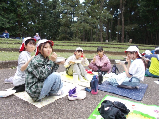 ④自分たちで火をおこして昼食の準備です。盛り付けは上手にできたかな?