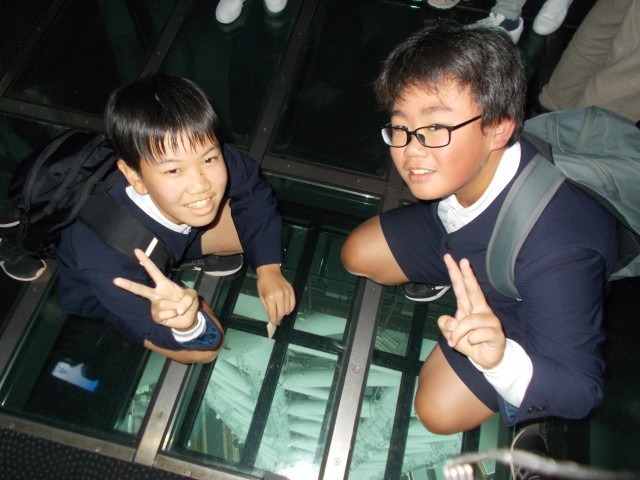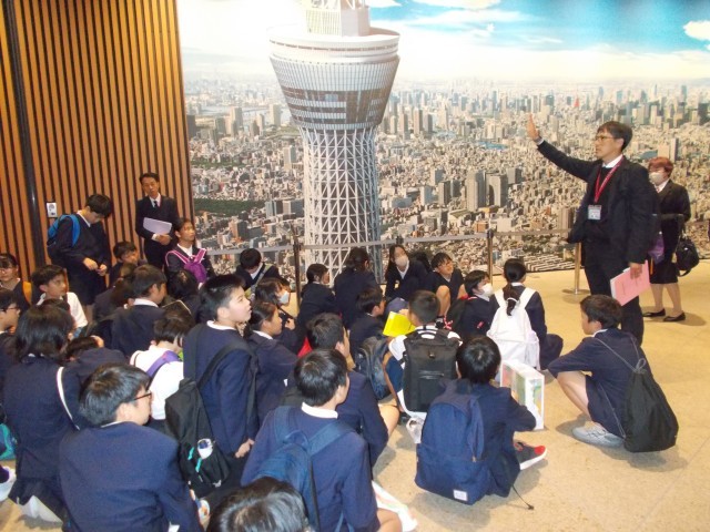 おみやげを買ったり、食べ歩きを楽しんだりした後は、東京スカイツリーの見学です。展望デッキからの眺めは最高でした。四季を表すエレベーターでの高速移動や期間限定のライトアップ、ステッカー配付などのレアな体験もすることができました。