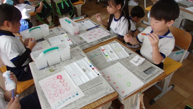 図工「うつしたかたちから」で、版画に挑戦しました。