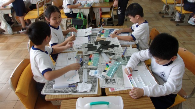 できあがった模様から「〇〇みたい」とイメージをして、作品作りにつなげていました。