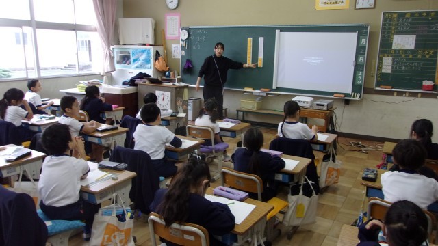 1校時の授業は、どちらのクラスも算数です。「くりさがりのある引き算」を学習しています。「11-2」や「13-8」をどうやって計算すればよいか、考えました。「11」を10と1に分け、10から2を引いて、そこに余っている1を足すという方法を、子どもたちは発表していました。