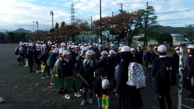 今朝、5年生が社会科見学に出発しました。本日の見学場所は、静岡にある地震防災センターと清水港です。防災に関する知識を深め、働く人の姿を見て「働くことの意義」を感じ取ってほしいと思います。みんな元気よくバスに乗り込んでいきました。