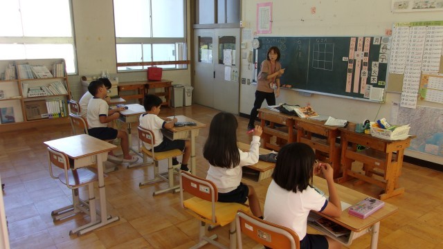 6年生は漢字の読み書きの練習を、2年生はかけ算九九を行いました。
