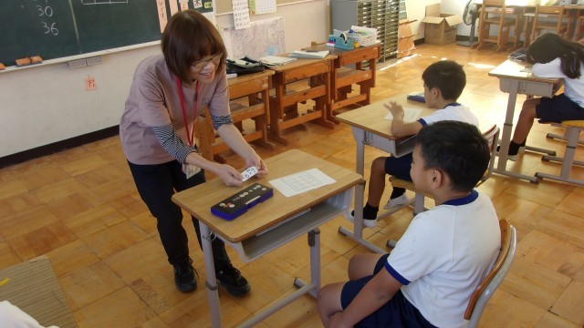 習った漢字を書いて声に出して読んだり、漢字とその読み方を線で結ぶ活動をゲーム感覚で行ったりしました。