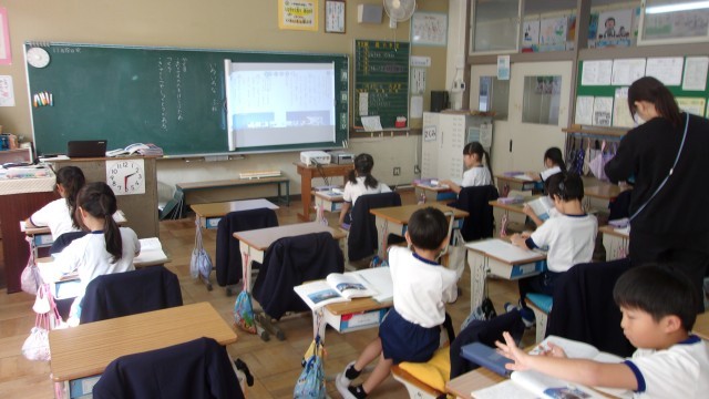1校時の授業は、どちらのクラスも国語です。「いろいろなふね」を学習しています。客船・フェリーボート・漁船・消防艇など、いろいろな種類の船があり、それぞれがどんな役目を持っているのかを読み取りました。