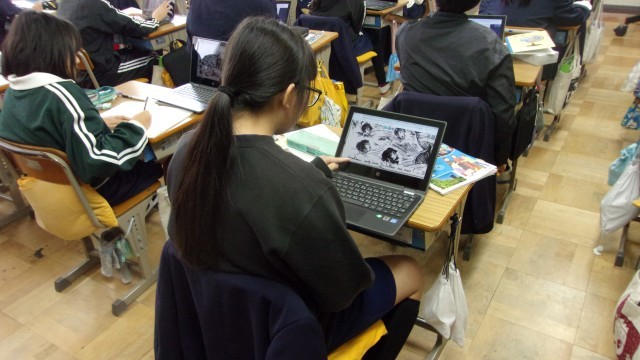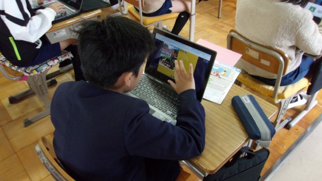 「課題を文章にまとめて学級で共有する」「ポスターを制作して、友達に紹介する」「資料から必要な情報の部分を引き延ばして調べる」、6年生では、このような使い方をしていました。