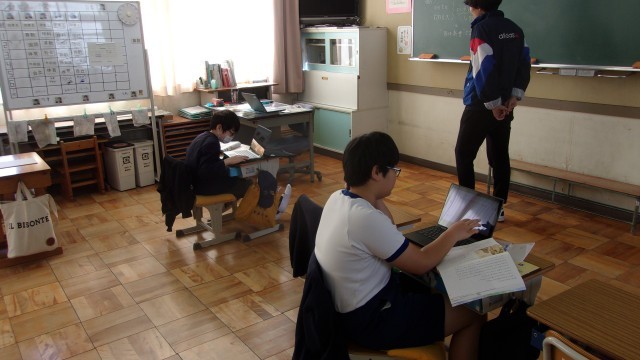 1組では図工、2組では国語と算数を、3組では国語と社会の授業を行いました。