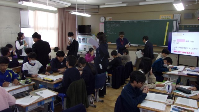 本日は、外部講師として早稲田大学の大村龍太郎先生をお招きし、校内研修を行いました。4校時は、6年3組の算数(公開授業)です。西小の電気代を節約するために全校体制で何ができるかを考えました。比例のグラフ(エアコンや照明、プロジェクタ、加湿器などの使用時間と電気代を表すもの)を使って、1か月に4万円節約するには具体的に(例:エアコンの使用を全クラスで1日40分短縮する等)どうすればよいかを話し合いました。身近な課題設定だったので、どの児童も自分なりの考えをしっかりと持つことができました。授業で完成させた計画に全校体制で取り組んで、節約の成果があがると良いですね。