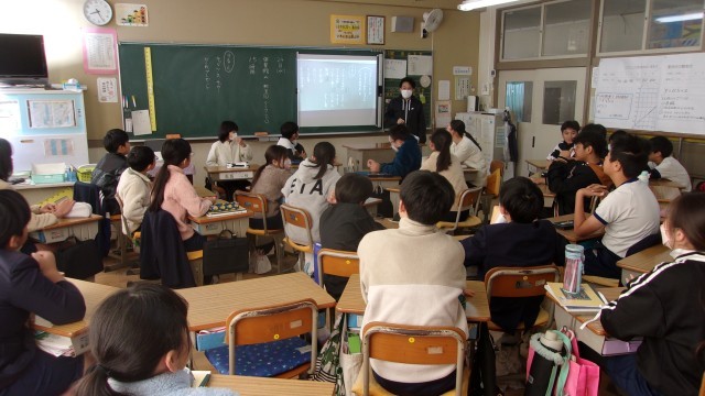 1校時の授業は、1・2組が国語、3組が学級会です。1組の国語では「海のいのち」を学習しています。小学校の国語で学習する最後の物語文です。物語が自分に語りかけたいことは何かを考えながら、全文を通読し、今後の学習計画を立てました。2組の国語は、テスト「冬休みまでの漢字」「冬休みまでの言葉」(両面)です。学習内容を思い出しながら真剣に取り組んでいました。3組は、12/24(水)に行うクラス遊びの内容をみんなで相談しました。イントロクイズやビンゴ大会、野球などいろいろな案があがっていました。