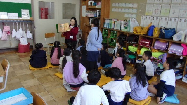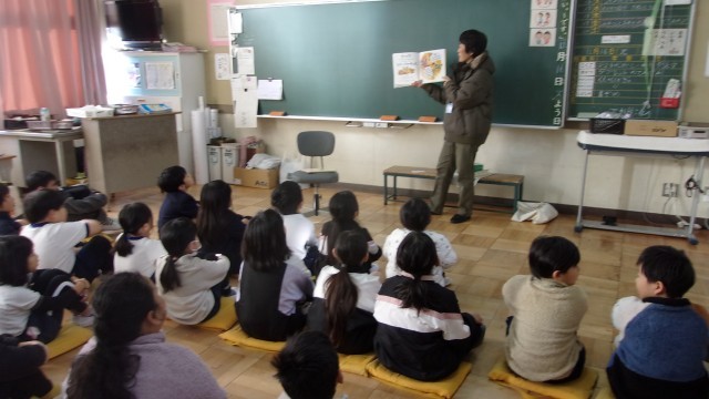 今朝は、メリーブックスさんによる読み聞かせ(低学年/いずみ1・2)がありました。低学年の子たちにとっては、年内最後の読み聞かせです。毎回楽しみにしている児童も多く、読み終わった後はどこの教室でも大きな拍手が起こっていました。