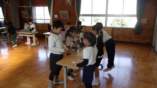 2校時の授業は、1組が学活、2組が生活です。学活では、タブレットの点検作業を行いました。自分が使っているタブレットの画面に異常がないか、押しても反応しないキーはないかなど、細かくチェックしていました。生活では、ALTの説明を聞きながら、自分のクリスマスツリーに飾り付けるカードを集める活動を行いました。友達と英語で会話しながら、一人が10枚のカードを集めます。笑顔で楽しそうに会話する様子が見られました。