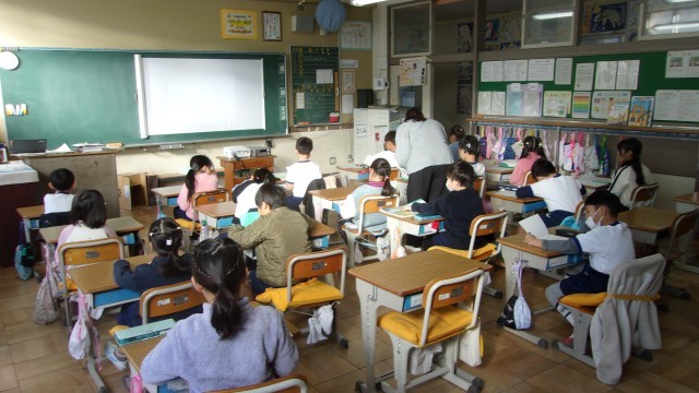 1校時の授業は、どちらのクラスも国語です。「おはなしをかこう」を学習しています。入学した頃に比べると、子どもたちの文章を書く力はかなり伸びてきたように思います。1組では、感謝したい人へのメッセージとして「ありがとうの手紙」を書いている子も見られました。