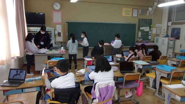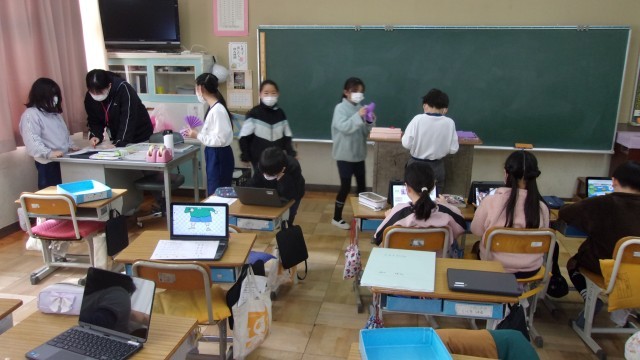 3校時の授業は、「6年生を送る会」の準備です。1組では、当日の会場を装飾するのに使うお花を作っています。お世話になった6年生のために一生懸命作業を進めていました。2組は、インフルエンザの流行で、今日から日曜日までの3日間、学級閉鎖となりました。来週は、元気に登校してほしいと思います。特にインフルエンザB型の流行が拡大しているようです。土・日曜日の過ごし方にも十分に注意をしてください。
