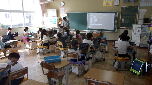 1校時の授業は、どちらのクラスも国語です。物語文「スイミー」を学習しています。1組では、小グループに分かれて役割を決め、動作を付けて演技練習をしました。どんな劇になるのか楽しみです。2組では、各自が本文を朗読練習し、タブレットで録音していました。