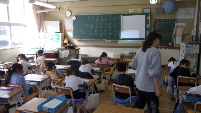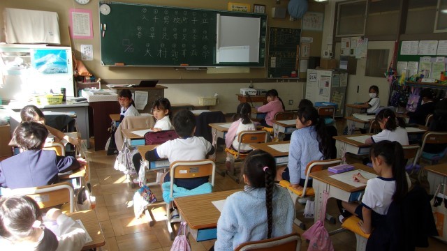 1校時の授業は、どちらのクラスも国語です。今週の金曜日に行われる「漢字博士」に向けて、今日は漢字練習をしました。1組では、タブレットを使って「3学期のまとめ」の範囲を学習しました。2組では、「1年の漢字のまとめ」プリントを学習しました。答え合わせをして「満点だった!」と喜んでいる児童も見られました。