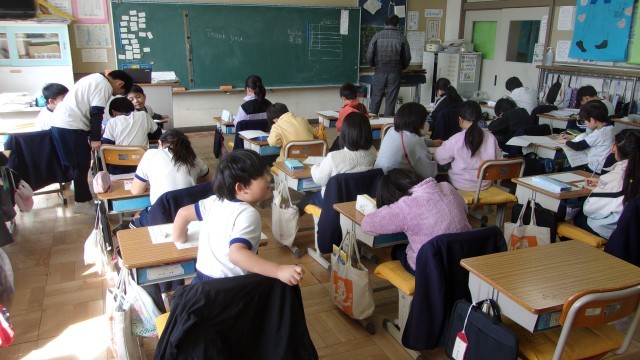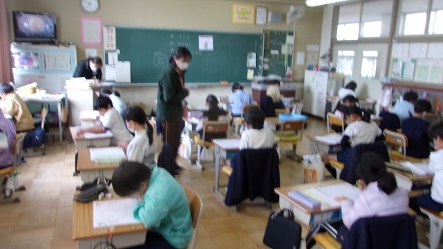 2校時の授業は、1組が国語、2組が生活です。国語では、「話すこと・聞くこと」のテストを行いました。早く終わってしまった子は、ペアの上級生に宛ててお礼の手紙を書きました。生活では、1年間お世話になった先生方に宛ててお礼の手紙を書きました。また、キャリアパスポートのファイルに入れる「1年間のふりかえりカード」を記入しました。