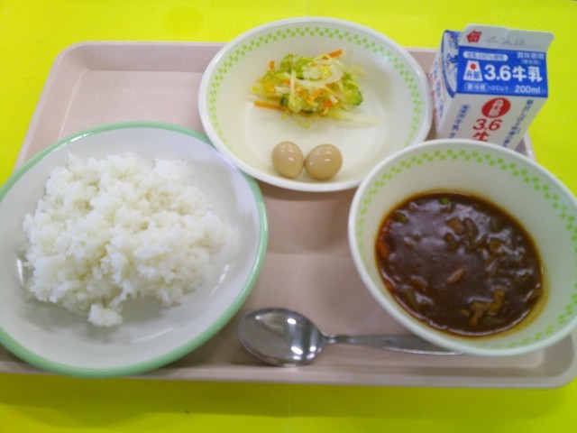 ハヤシライスの日はいつもと同じ量の白米では足りない様子で、どの子も米粒がひとつも残っていないきれいなお皿でした。