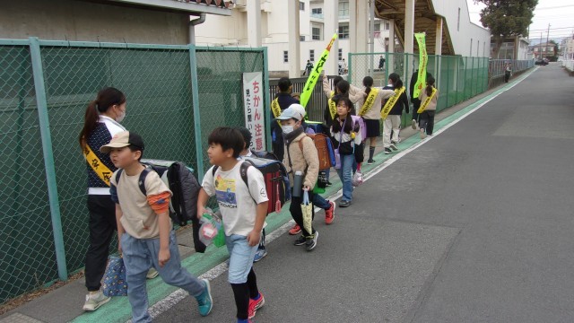 今日はあいさつ運動の第2日目です。前回とはメンバーが交代して、今日も学校周回コースをあいさつしながらリーダーたちが歩きました。下校していく在校生たちが大きな声で「さようなら!」とあいさつしてくれました。こちらが明るい声であいさつすると、地域の方もみな微笑んであいさつを返してくれます。「世界一のあいさつ」をもっともっと発信したいですね。