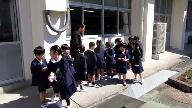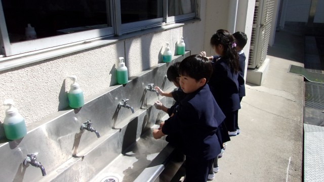 2校時の授業は、どちらのクラスも学活です。担任の先生が「トイレと流しの使い方」について説明をしました。1組では、トイレットペーパーの実物を使って説明をし、2組では中庭の流しへ出て、実際に手を洗ってみました。「西小学校での1日の生活」を少しずつ学んでいきます。細かいことですが、西小の約束事をしっかり守れる子になってほしいと思います。