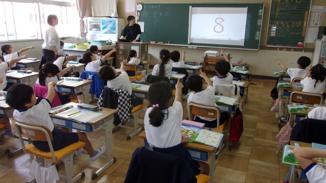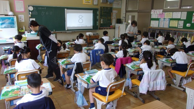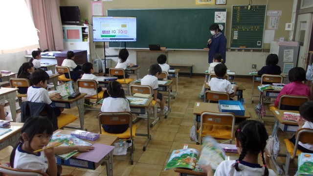 1校時の授業は、どちらのクラスも算数です。「10までの数」を学習しています。0から10までの数の書き順をおぼえ、視覚的に量の違いを確認しました。数字の書き順では、指で何度もなぞって確認している様子が見られました。