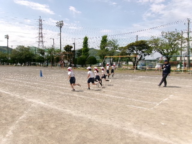 今日は「10m」という短い距離を、1回めは5秒で走り、2回めは4秒で走る、というおもしろい活動に挑戦していました。