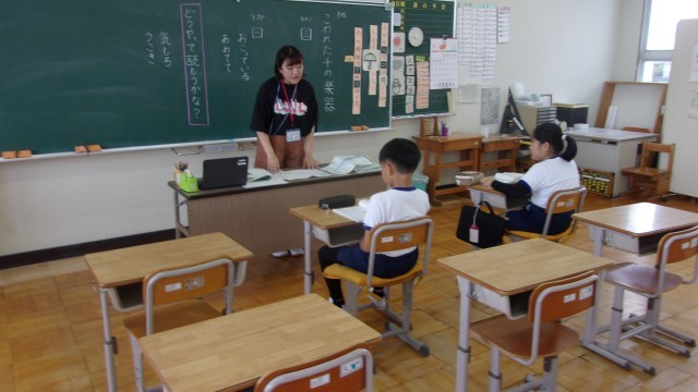 外国籍児童の取り出し授業(めぐみ)が今週からスタートしました。国語と算数を中心に少人数で学習を進めます。今日の2校時の授業は4年国語でした。現在、『こわれた千の楽器』を学習しています。各場面の登場人物の心情を想像し、それをもとに音読を工夫していました。