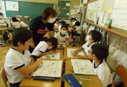 保健の授業を行っていました。「健康でいるためにどんなことをしたらよいのかな?」とグループで話しあって発表をしていました。日々の生活の中、元気に過ごすために大切なことですね。夏休みの過ごし方にもつながる学習でした。