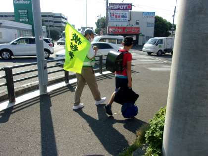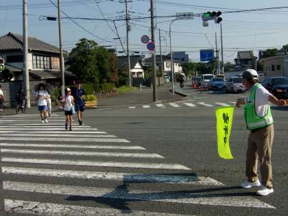そのような中、1号線の横断歩道には見守り隊の方々が立ってくださっています。