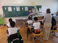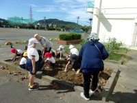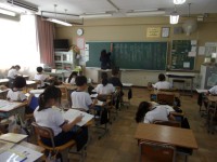 整列の練習を行っていました。前列と横列の位置を確認して、号令に合わせて移動していました。後半は、ボール投げの練習を元気よく行っていました。