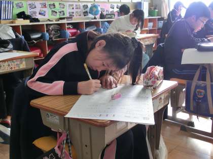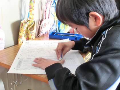 問題を見たとたん、漢字は書けそうだ!作文の題は何かな?主語・述語・形容詞は?高学年になるほど、頭の引出しを総動員して取り組んでいます。