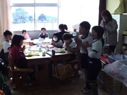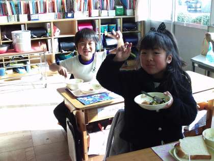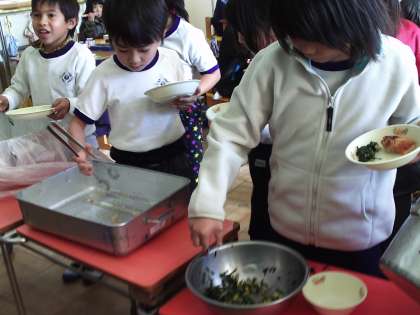 2年生の給食風景です。ほうれん草は苦手な子も多い食材ですが、おかわりする子もいて感心しました。