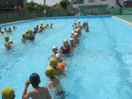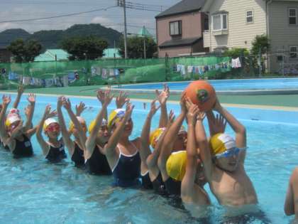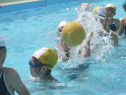 水中メディシングは、頭の上を通すのは楽でも、股下を通すのが難しい! 大苦戦です。