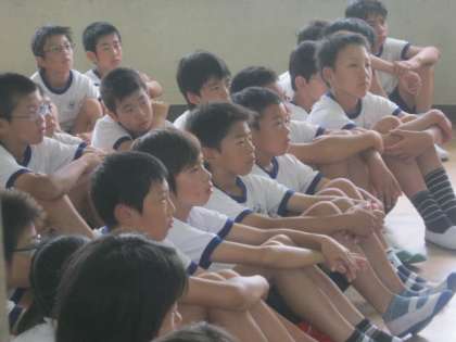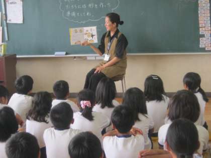5,6年生の教室をのぞいてみると、どの教室にも、読み聞かせに真剣に聞き入る子どもたちがいました。