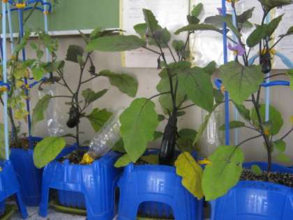 来て欲しくはありませんが、今夜から明日にかけて、台風が来そうです。1,2年生のアサガオや野菜は、早々に廊下へ避難しました。せっかくこんなに育ったなすが飛ばされては、残念すぎますからね。