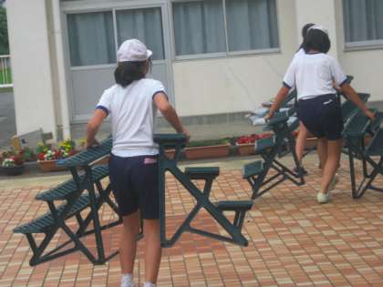 サルビアのプランターは、環境委員さんたちが花台から下ろし、花台は児童玄関にしまってくれました。