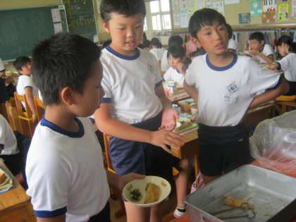 「にじますのレモンソースがけ」は、さっぱりしておいしい派と、すっぱくて苦手派に、好みが分かれたようで…。でも、気に入った子たちはお代わりをしてくれていました。