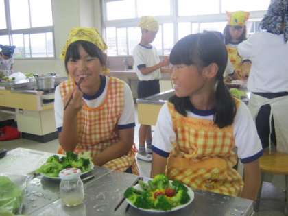 中:ドレッシングのお味がお気に召さなかったそうで、「すっぱー!」の顔です。