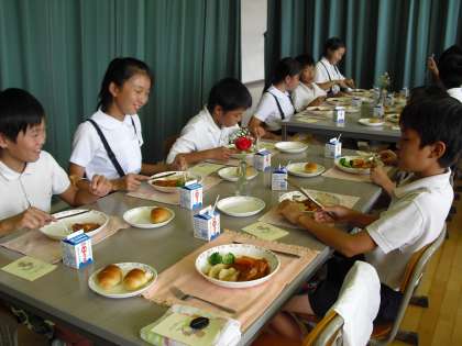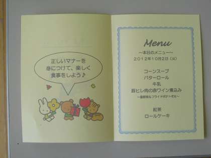 今日から6年生は学級ごとにマナー給食です。テーブルマナーも教えてもらいながら、いつもとはひと味違った給食に、子どもたちも少し緊張気味でした。デザートのケーキになると、さすがにほっとしたようで表情も柔らかくなりました。