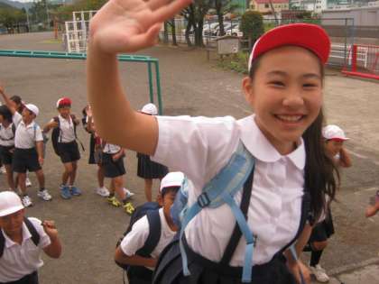 班ごとにバスに乗り込みます。みんな、いい顔してるね!