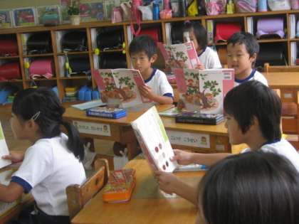 1年生の国語の授業を見せてもらいました。先生方、全員が、1年に一度はこうして授業を公開してくれます。