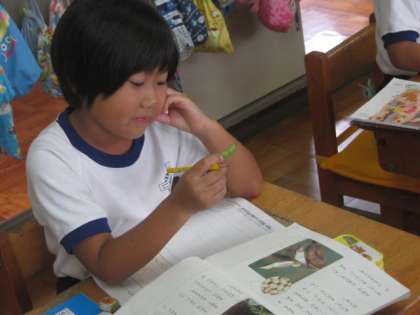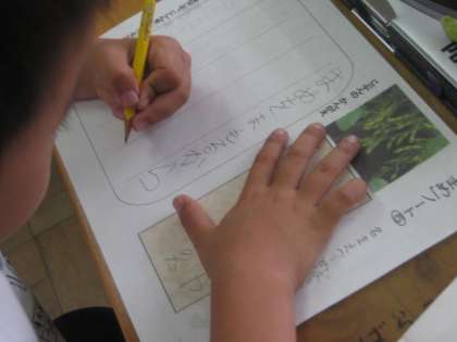ワークシートに、「まめは、どうしてさやにつつまれているの」という課題に対する自分の考えを書きました。