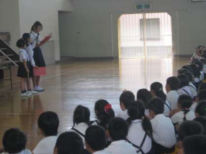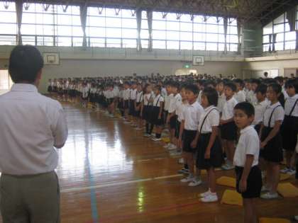 今日で、平成24年度の前期が終了します。今朝は、全校児童が一堂に会し、終業式を行いました。