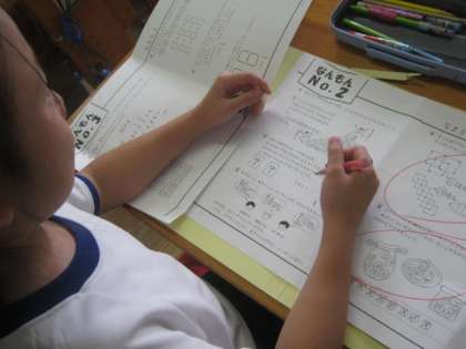 2年生が、ちょっと難易度の高い問題に挑戦していました。学習したことをどう使うか、頭をひねって挑戦です。