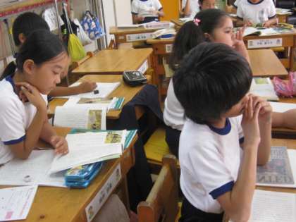 4年生の国語です。今日は、「ごんぎつね」の全文を読み、はじめの感想を書いていました。感想だけでなく、みんなで追究する課題を見つけながら読んでいるんだそうです。