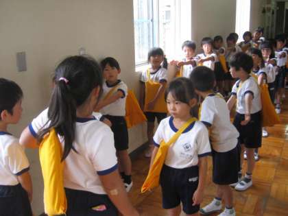 1年生が、生活科の合同授業できつつきホールへ集合します。ならべる係さんの号令で、上手に整列して出発していきました。ふれあいパークの計画、がんばってね。
