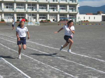 5,6年生が、新体力テストに挑戦しています。