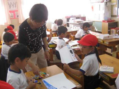 1年生が、とびらを開けると変身するカードを作っていました。
