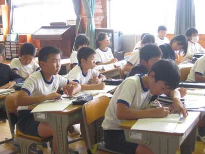 5年生は、少人数の算数でした。サンルームも使って、4教室に分かれて学習している様子をご覧いただきました。