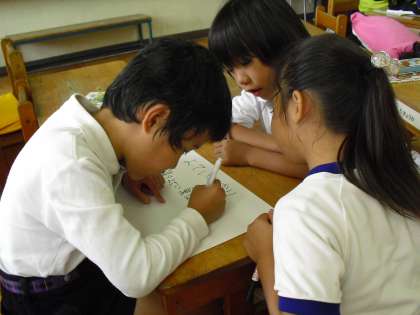 後期が始まり、自分たちのクラスをより良くするための活動を考えています。2年生のクラスでは、係活動のカードを作っていました。自分の仕事をはっきりとさせて取り組むために、また、だれがどんな仕事をするのかを知らせるためにもカードは大切です。字の大きさや色、文字を書く場所など、2年生なりにいろいろ意見を出し合って考えているので感心しました。
