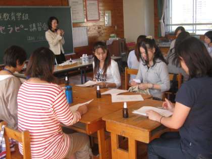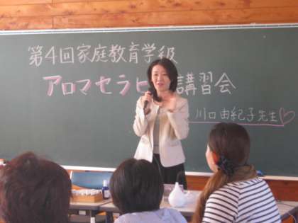 今回の内容は、アロマセラピー。講師の先生をお招きして、アロマセラピーの効用やオイルの基本的な知識などの講義をしていただきました。